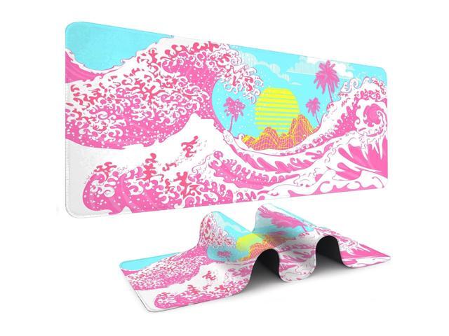 Alpha Fit Pink Sakura Great Wave Gaming Mouse Pad XXL (35.4" x 15.7") - Cute Cherry Blossom Japanese Art Desk Mat - Kawaii Aesthetic Extended Mousepad