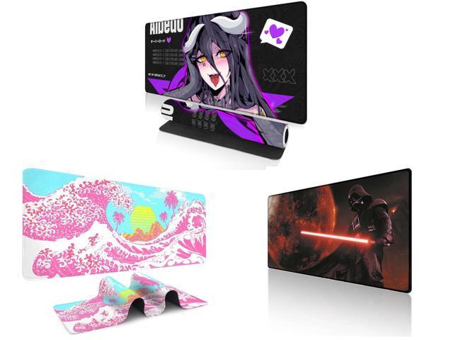 Alpha Fit Anime Gaming Mouse Pad XXL (35.4" x 15.7") - Dark Fantasy Succubus Girl - Large Mouse Pad Extended - Extra Large Gaming Mouse Pads Purple Waifu Style - 02 and 1 x Alpha Fit Pink Sakura Great Wave Gaming Mouse Pad XXL (35.4" x 15.7") - Cute Cherry Blossom Japanese Art Desk Mat - Kawaii Aesthetic Extended Mousepad and 1 x Alpha Fit Starwar Gaming Mouse Pad XXL (31.5" x 11.8") - Star Wars Themed Large Mouse Pad - Extra Large Gaming Mouse Pads with Non-Slip Rubber Base & Stitched Edges for Sci-Fi Setup