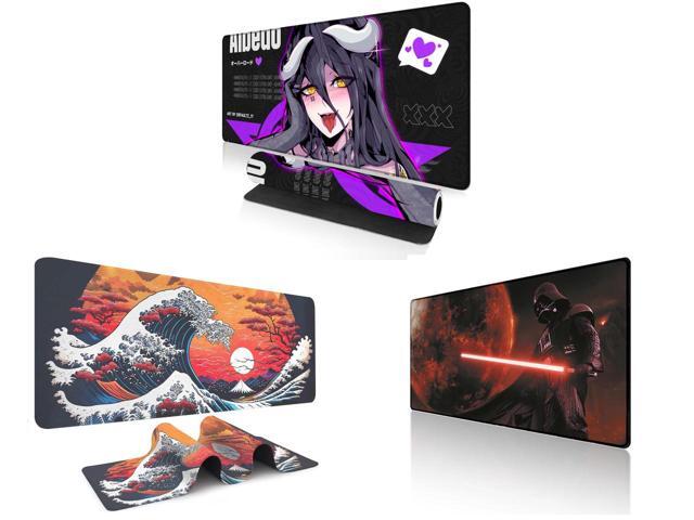 Alpha Fit Anime Gaming Mouse Pad XXL (35.4" x 15.7") - Dark Fantasy Succubus Girl - Large Mouse Pad Extended - Extra Large Gaming Mouse Pads Purple Waifu Style - 02 and 1 x Alpha Fit Orange Sunset Great Wave Gaming Mouse Pad XXL (35.4" x 15.7") - Warm Golden Hour Japanese Art Desk Mat - Lofi Aesthetic Extended Pad and 1 x Alpha Fit Starwar Gaming Mouse Pad XXL (31.5" x 11.8") - Star Wars Themed Large Mouse Pad - Extra Large Gaming Mouse Pads with Non-Slip Rubber Base & Stitched Edges for Sci-Fi Setup