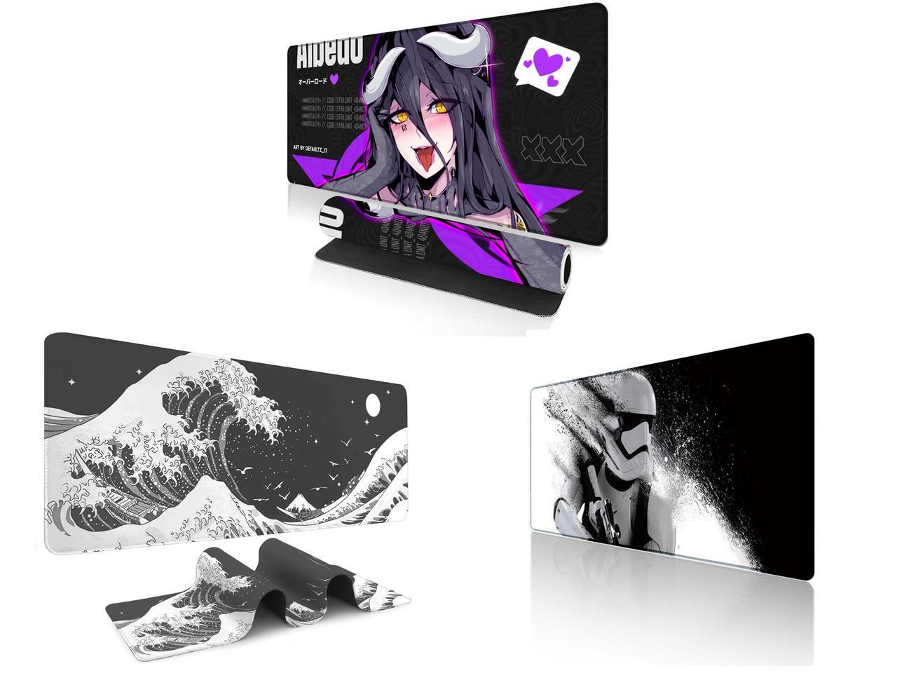 Alpha Fit Anime Gaming Mouse Pad XXL (35.4" x 15.7") - Dark Fantasy Succubus Girl - Large Mouse Pad Extended - Extra Large Gaming Mouse Pads Purple Waifu Style - 02 and 1 x Alpha Fit Black & White Great Wave Gaming Mouse Pad XXL (35.4" x 15.7") - Monochrome Ink Wash Japanese Art Desk Mat - Minimalist Setup with Stitched Edges and 1 x Alpha Fit Star Wars Gaming Mouse Pad XXL (31.5" x 11.8") - Stormtrooper Shatter Black & White - Large Mouse Pad Extended - Sci-Fi Galaxy Empire Desk Mat 12