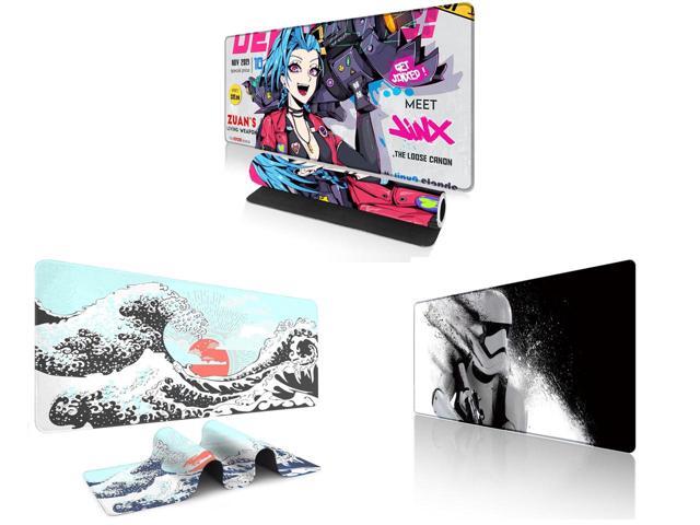 Alpha Fit Anime Gaming Mouse Pad XXL (35.4" x 15.7") - Blue Punk Graffiti Girl - Large Mouse Pad Extended - Extra Large Gaming Mouse Pads Loose Cannon Style - 03 and 1 x Alpha Fit Mint Green Great Wave Gaming Mouse Pad XXL (35.4" x 15.7") - Soft Teal Japanese Art Desk Mat - Fresh Nature Aesthetic Extended Keyboard Mat and 1 x Alpha Fit Star Wars Gaming Mouse Pad XXL (31.5" x 11.8") - Stormtrooper Shatter Black & White - Large Mouse Pad Extended - Sci-Fi Galaxy Empire Desk Mat 12