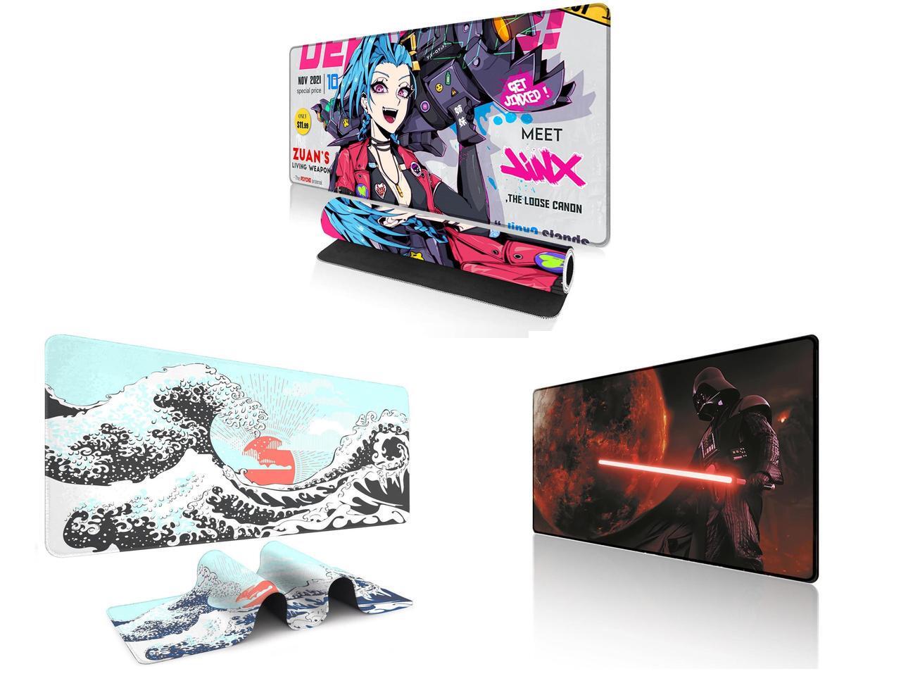 Alpha Fit Anime Gaming Mouse Pad XXL (35.4" x 15.7") - Blue Punk Graffiti Girl - Large Mouse Pad Extended - Extra Large Gaming Mouse Pads Loose Cannon Style - 03 and 1 x Alpha Fit Mint Green Great Wave Gaming Mouse Pad XXL (35.4" x 15.7") - Soft Teal Japanese Art Desk Mat - Fresh Nature Aesthetic Extended Keyboard Mat and 1 x Alpha Fit Starwar Gaming Mouse Pad XXL (31.5" x 11.8") - Star Wars Themed Large Mouse Pad - Extra Large Gaming Mouse Pads with Non-Slip Rubber Base & Stitched Edges for Sci-Fi Setup
