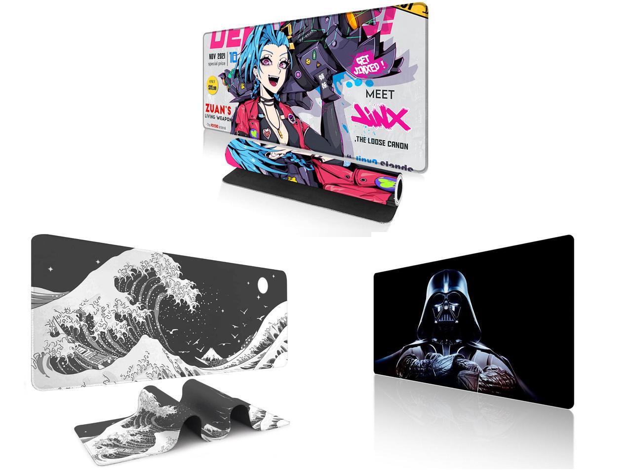 Alpha Fit Anime Gaming Mouse Pad XXL (35.4" x 15.7") - Blue Punk Graffiti Girl - Large Mouse Pad Extended - Extra Large Gaming Mouse Pads Loose Cannon Style - 03 and 1 x Alpha Fit Black & White Great Wave Gaming Mouse Pad XXL (35.4" x 15.7") - Monochrome Ink Wash Japanese Art Desk Mat - Minimalist Setup with Stitched Edges and 1 x Alpha Fit Star Wars Gaming Mouse Pad XXL (31.5" x 11.8") - Darth Vader Dark Side Art - Large Mouse Pad Extended - Extra Large Gaming Mouse Pads Sith Lord Desk Mat 31