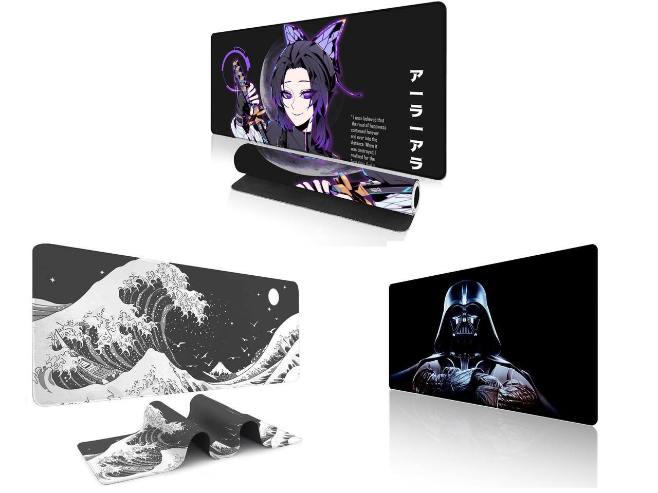 Alpha Fit Anime Gaming Mouse Pad XXL (35.4" x 15.7") - Purple Butterfly Swordswoman - Large Mouse Pad Extended - Extra Large Gaming Mouse Pads Ara Ara Katana Style - 06 and 1 x Alpha Fit Black & White Great Wave Gaming Mouse Pad XXL (35.4" x 15.7") - Monochrome Ink Wash Japanese Art Desk Mat - Minimalist Setup with Stitched Edges and 1 x Alpha Fit Star Wars Gaming Mouse Pad XXL (31.5" x 11.8") - Darth Vader Dark Side Art - Large Mouse Pad Extended - Extra Large Gaming Mouse Pads Sith Lord Desk Mat 31