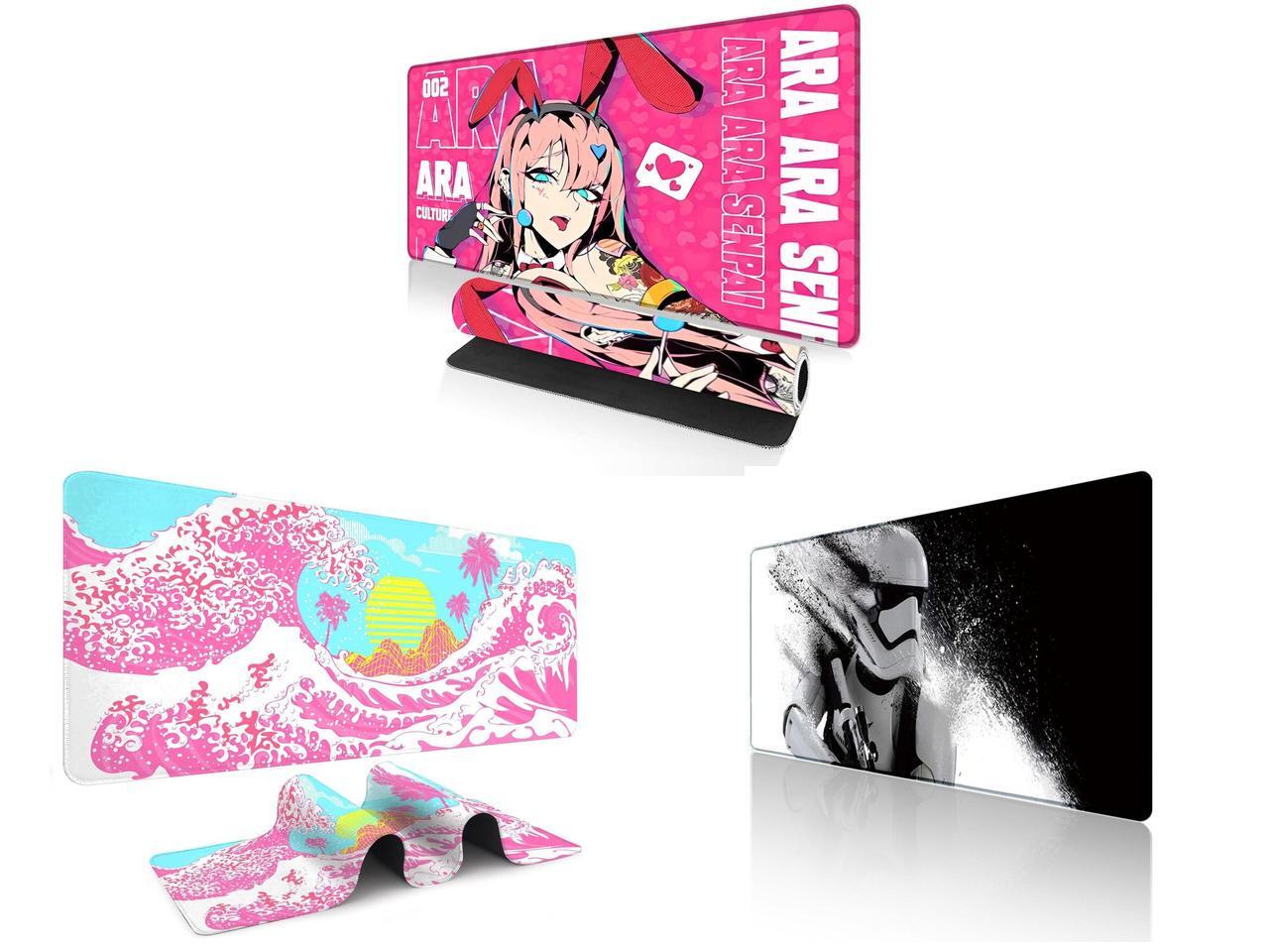 Alpha Fit Anime Gaming Mouse Pad XXL (35.4" x 15.7") - Pink Bunny Girl Waifu - Large Mouse Pad Extended - Extra Large Gaming Mouse Pads Ara Ara Senpai Style - 04 and 1 x Alpha Fit Pink Sakura Great Wave Gaming Mouse Pad XXL (35.4" x 15.7") - Cute Cherry Blossom Japanese Art Desk Mat - Kawaii Aesthetic Extended Mousepad and 1 x Alpha Fit Star Wars Gaming Mouse Pad XXL (31.5" x 11.8") - Stormtrooper Shatter Black & White - Large Mouse Pad Extended - Sci-Fi Galaxy Empire Desk Mat 12