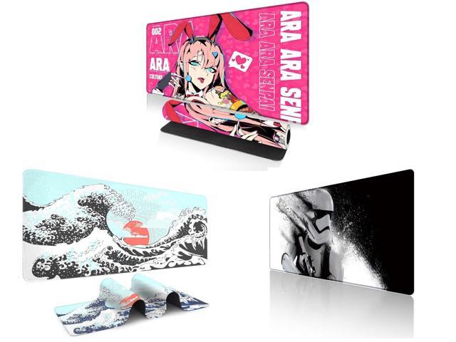 Alpha Fit Anime Gaming Mouse Pad XXL (35.4" x 15.7") - Pink Bunny Girl Waifu - Large Mouse Pad Extended - Extra Large Gaming Mouse Pads Ara Ara Senpai Style - 04 and 1 x Alpha Fit Mint Green Great Wave Gaming Mouse Pad XXL (35.4" x 15.7") - Soft Teal Japanese Art Desk Mat - Fresh Nature Aesthetic Extended Keyboard Mat and 1 x Alpha Fit Star Wars Gaming Mouse Pad XXL (31.5" x 11.8") - Stormtrooper Shatter Black & White - Large Mouse Pad Extended - Sci-Fi Galaxy Empire Desk Mat 12