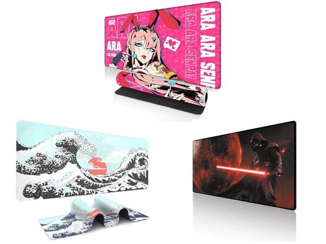 Alpha Fit Anime Gaming Mouse Pad XXL (35.4" x 15.7") - Pink Bunny Girl Waifu - Large Mouse Pad Extended - Extra Large Gaming Mouse Pads Ara Ara Senpai Style - 04 and 1 x Alpha Fit Mint Green Great Wave Gaming Mouse Pad XXL (35.4" x 15.7") - Soft Teal Japanese Art Desk Mat - Fresh Nature Aesthetic Extended Keyboard Mat and 1 x Alpha Fit Starwar Gaming Mouse Pad XXL (31.5" x 11.8") - Star Wars Themed Large Mouse Pad - Extra Large Gaming Mouse Pads with Non-Slip Rubber Base & Stitched Edges for Sci-Fi Setup