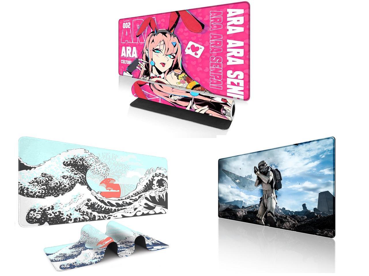 Alpha Fit Anime Gaming Mouse Pad XXL (35.4" x 15.7") - Pink Bunny Girl Waifu - Large Mouse Pad Extended - Extra Large Gaming Mouse Pads Ara Ara Senpai Style - 04 and 1 x Alpha Fit Mint Green Great Wave Gaming Mouse Pad XXL (35.4" x 15.7") - Soft Teal Japanese Art Desk Mat - Fresh Nature Aesthetic Extended Keyboard Mat and 1 x Alpha Fit Star Wars Gaming Mouse Pad XXL (31.5" x 11.8") - Stormtrooper & Star Destroyer Battlefield Art - Large Mouse Pad Extended - Galactic Empire Gaming Desk Mat 34
