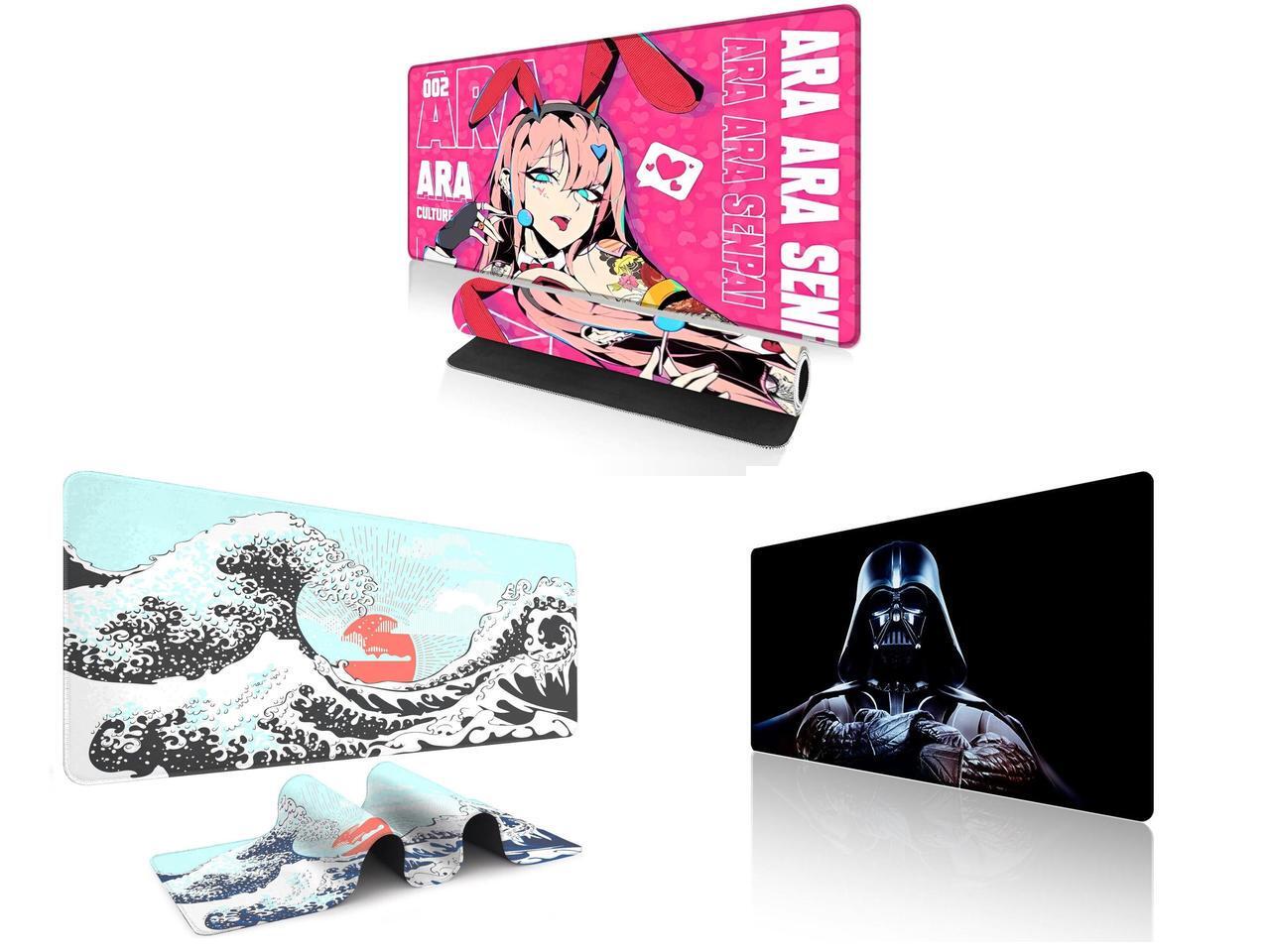 Alpha Fit Anime Gaming Mouse Pad XXL (35.4" x 15.7") - Pink Bunny Girl Waifu - Large Mouse Pad Extended - Extra Large Gaming Mouse Pads Ara Ara Senpai Style - 04 and 1 x Alpha Fit Mint Green Great Wave Gaming Mouse Pad XXL (35.4" x 15.7") - Soft Teal Japanese Art Desk Mat - Fresh Nature Aesthetic Extended Keyboard Mat and 1 x Alpha Fit Star Wars Gaming Mouse Pad XXL (31.5" x 11.8") - Darth Vader Dark Side Art - Large Mouse Pad Extended - Extra Large Gaming Mouse Pads Sith Lord Desk Mat 31