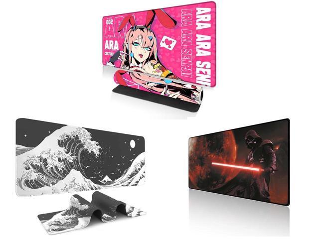 Alpha Fit Anime Gaming Mouse Pad XXL (35.4" x 15.7") - Pink Bunny Girl Waifu - Large Mouse Pad Extended - Extra Large Gaming Mouse Pads Ara Ara Senpai Style - 04 and 1 x Alpha Fit Black & White Great Wave Gaming Mouse Pad XXL (35.4" x 15.7") - Monochrome Ink Wash Japanese Art Desk Mat - Minimalist Setup with Stitched Edges and 1 x Alpha Fit Starwar Gaming Mouse Pad XXL (31.5" x 11.8") - Star Wars Themed Large Mouse Pad - Extra Large Gaming Mouse Pads with Non-Slip Rubber Base & Stitched Edges for Sci-Fi Setup