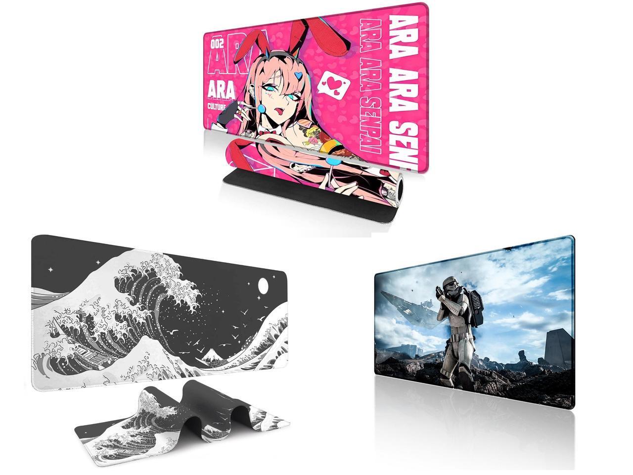 Alpha Fit Anime Gaming Mouse Pad XXL (35.4" x 15.7") - Pink Bunny Girl Waifu - Large Mouse Pad Extended - Extra Large Gaming Mouse Pads Ara Ara Senpai Style - 04 and 1 x Alpha Fit Black & White Great Wave Gaming Mouse Pad XXL (35.4" x 15.7") - Monochrome Ink Wash Japanese Art Desk Mat - Minimalist Setup with Stitched Edges and 1 x Alpha Fit Star Wars Gaming Mouse Pad XXL (31.5" x 11.8") - Stormtrooper & Star Destroyer Battlefield Art - Large Mouse Pad Extended - Galactic Empire Gaming Desk Mat 34
