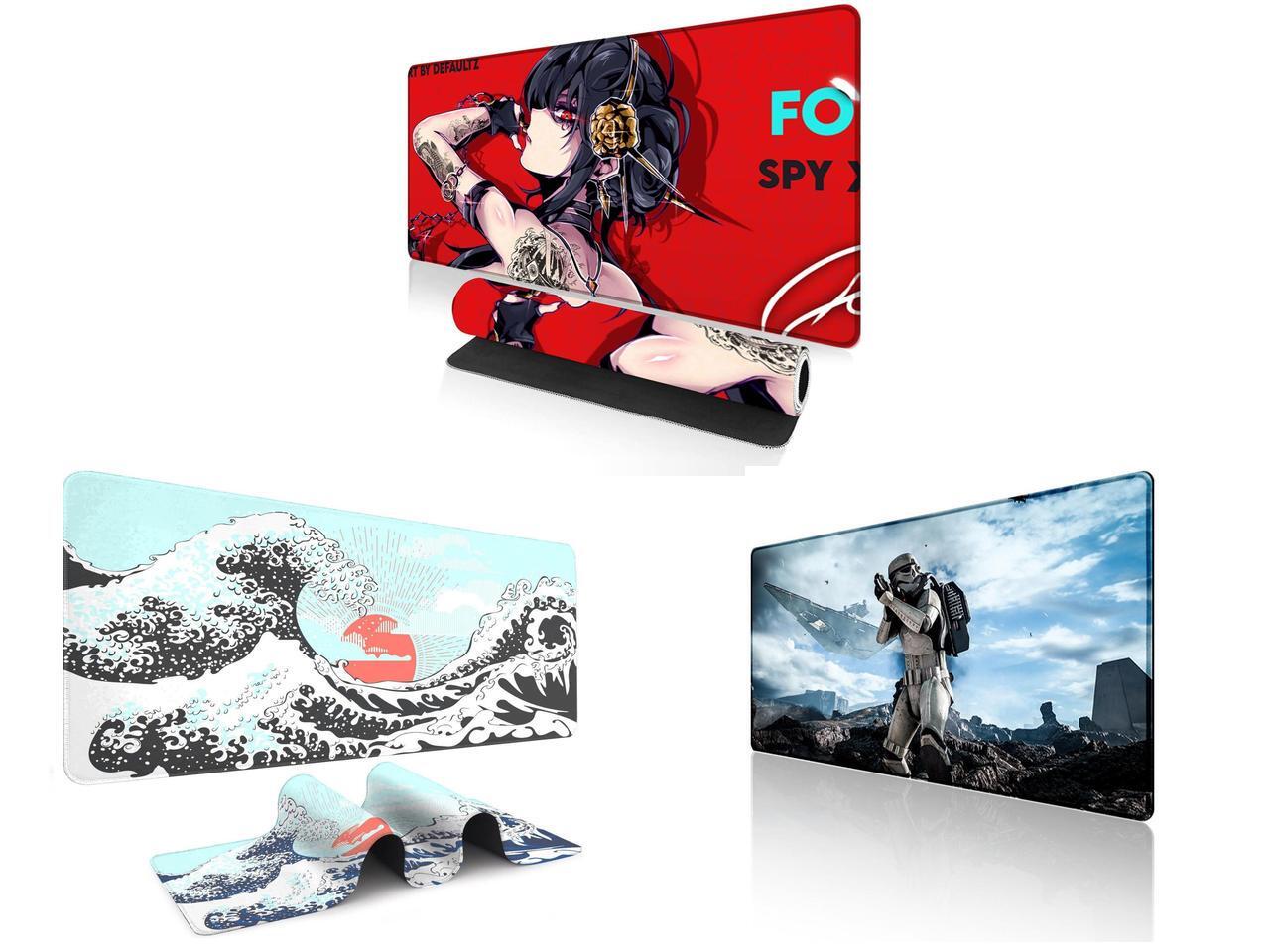 Alpha Fit Anime Gaming Mouse Pad XXL (35.4" x 15.7") - Red Rose Assassin Girl - Large Mouse Pad Extended - Extra Large Gaming Mouse Pads Secret Agent Style - 11 and 1 x Alpha Fit Mint Green Great Wave Gaming Mouse Pad XXL (35.4" x 15.7") - Soft Teal Japanese Art Desk Mat - Fresh Nature Aesthetic Extended Keyboard Mat and 1 x Alpha Fit Star Wars Gaming Mouse Pad XXL (31.5" x 11.8") - Stormtrooper & Star Destroyer Battlefield Art - Large Mouse Pad Extended - Galactic Empire Gaming Desk Mat 34