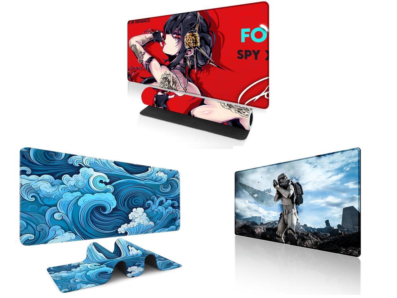 Alpha Fit Anime Gaming Mouse Pad XXL (35.4" x 15.7") - Red Rose Assassin Girl - Large Mouse Pad Extended - Extra Large Gaming Mouse Pads Secret Agent Style - 11 and 1 x Alpha Fit Classic Great Wave off Kanagawa Gaming Mouse Pad XXL (35.4" x 15.7") - Traditional Blue Japanese Art Desk Mat - Non-Slip Rubber Base for Office and 1 x Alpha Fit Star Wars Gaming Mouse Pad XXL (31.5" x 11.8") - Stormtrooper & Star Destroyer Battlefield Art - Large Mouse Pad Extended - Galactic Empire Gaming Desk Mat 34