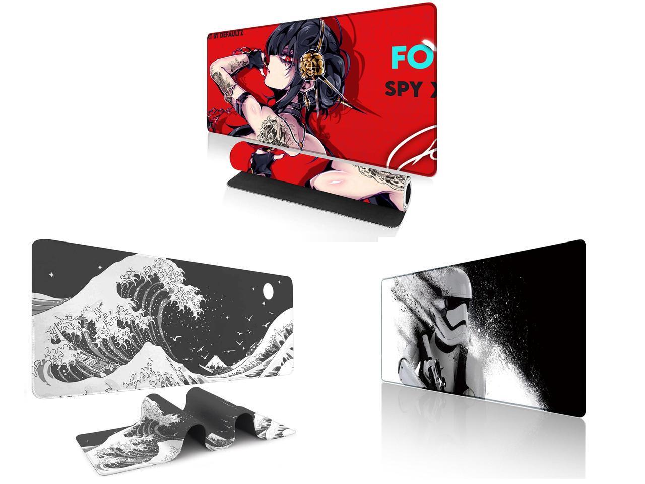 Alpha Fit Anime Gaming Mouse Pad XXL (35.4" x 15.7") - Red Rose Assassin Girl - Large Mouse Pad Extended - Extra Large Gaming Mouse Pads Secret Agent Style - 11 and 1 x Alpha Fit Black & White Great Wave Gaming Mouse Pad XXL (35.4" x 15.7") - Monochrome Ink Wash Japanese Art Desk Mat - Minimalist Setup with Stitched Edges and 1 x Alpha Fit Star Wars Gaming Mouse Pad XXL (31.5" x 11.8") - Stormtrooper Shatter Black & White - Large Mouse Pad Extended - Sci-Fi Galaxy Empire Desk Mat 12