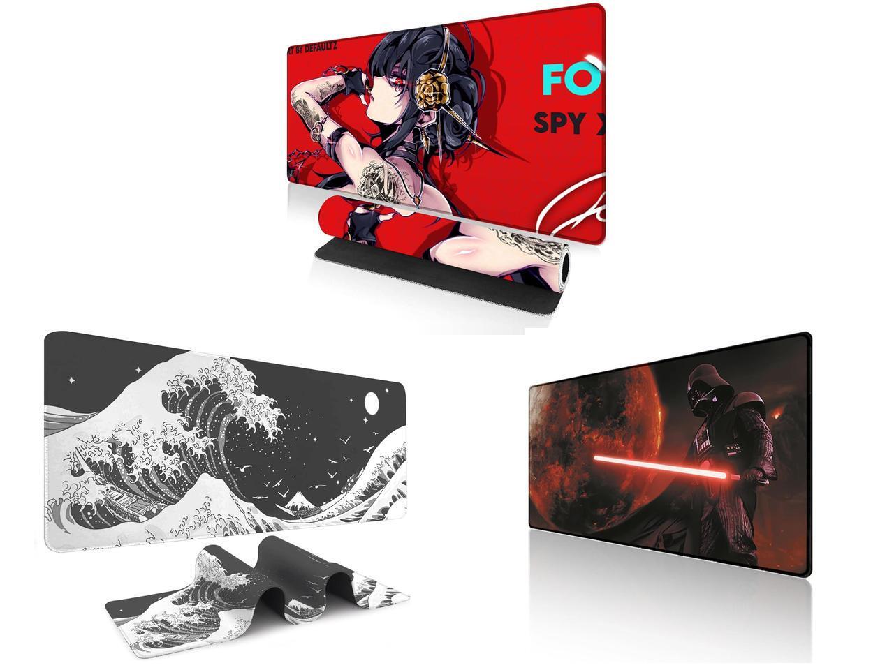 Alpha Fit Anime Gaming Mouse Pad XXL (35.4" x 15.7") - Red Rose Assassin Girl - Large Mouse Pad Extended - Extra Large Gaming Mouse Pads Secret Agent Style - 11 and 1 x Alpha Fit Black & White Great Wave Gaming Mouse Pad XXL (35.4" x 15.7") - Monochrome Ink Wash Japanese Art Desk Mat - Minimalist Setup with Stitched Edges and 1 x Alpha Fit Starwar Gaming Mouse Pad XXL (31.5" x 11.8") - Star Wars Themed Large Mouse Pad - Extra Large Gaming Mouse Pads with Non-Slip Rubber Base & Stitched Edges for Sci-Fi Setup