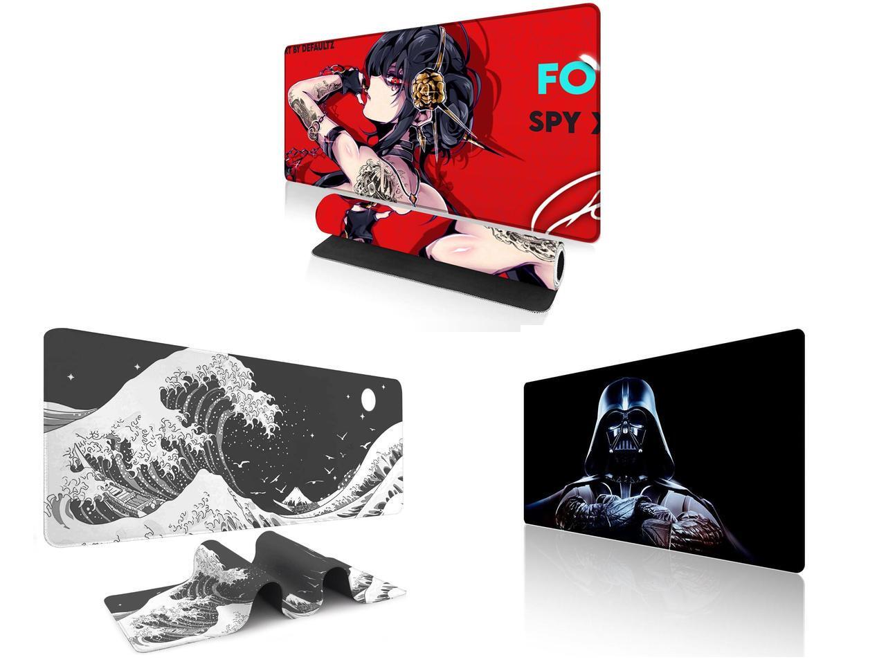 Alpha Fit Anime Gaming Mouse Pad XXL (35.4" x 15.7") - Red Rose Assassin Girl - Large Mouse Pad Extended - Extra Large Gaming Mouse Pads Secret Agent Style - 11 and 1 x Alpha Fit Black & White Great Wave Gaming Mouse Pad XXL (35.4" x 15.7") - Monochrome Ink Wash Japanese Art Desk Mat - Minimalist Setup with Stitched Edges and 1 x Alpha Fit Star Wars Gaming Mouse Pad XXL (31.5" x 11.8") - Darth Vader Dark Side Art - Large Mouse Pad Extended - Extra Large Gaming Mouse Pads Sith Lord Desk Mat 31