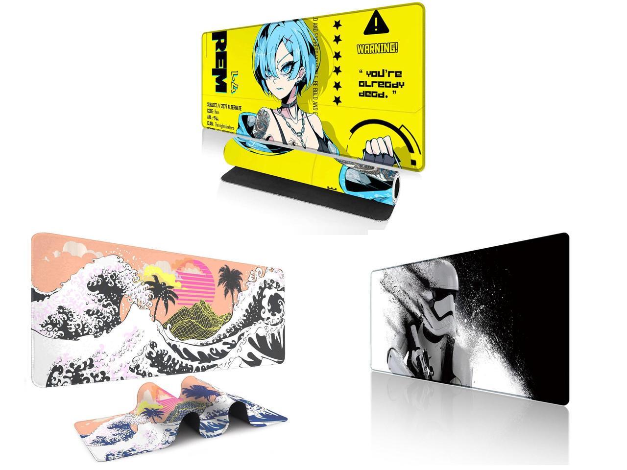 Alpha Fit Anime Gaming Mouse Pad XXL (35.4" x 15.7") - Cyberpunk Blue Haired Girl - Large Mouse Pad Extended - Extra Large Gaming Mouse Pads Yellow Caution Style - 07 and 1 x Alpha Fit Orange Sunset Great Wave Gaming Mouse Pad XXL (35.4" x 15.7") - Warm Golden Hour Japanese Art Desk Mat - Lofi Aesthetic Extended Pad and 1 x Alpha Fit Star Wars Gaming Mouse Pad XXL (31.5" x 11.8") - Stormtrooper Shatter Black & White - Large Mouse Pad Extended - Sci-Fi Galaxy Empire Desk Mat 12
