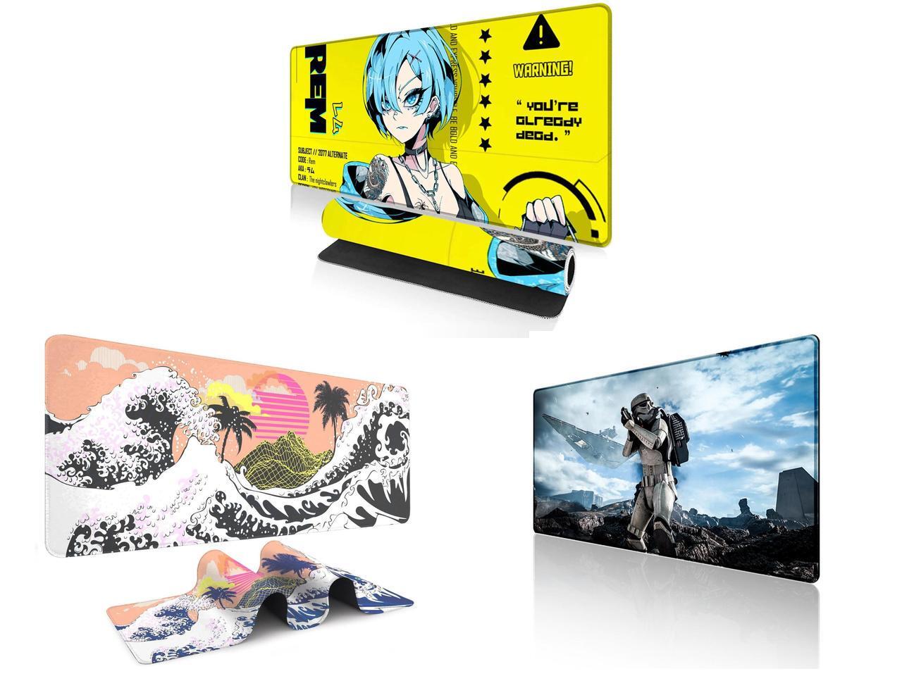 Alpha Fit Anime Gaming Mouse Pad XXL (35.4" x 15.7") - Cyberpunk Blue Haired Girl - Large Mouse Pad Extended - Extra Large Gaming Mouse Pads Yellow Caution Style - 07 and 1 x Alpha Fit Orange Sunset Great Wave Gaming Mouse Pad XXL (35.4" x 15.7") - Warm Golden Hour Japanese Art Desk Mat - Lofi Aesthetic Extended Pad and 1 x Alpha Fit Star Wars Gaming Mouse Pad XXL (31.5" x 11.8") - Stormtrooper & Star Destroyer Battlefield Art - Large Mouse Pad Extended - Galactic Empire Gaming Desk Mat 34