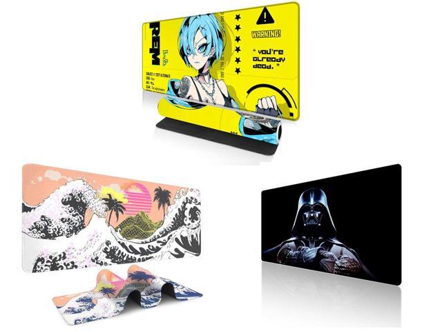 Alpha Fit Anime Gaming Mouse Pad XXL (35.4" x 15.7") - Cyberpunk Blue Haired Girl - Large Mouse Pad Extended - Extra Large Gaming Mouse Pads Yellow Caution Style - 07 and 1 x Alpha Fit Orange Sunset Great Wave Gaming Mouse Pad XXL (35.4" x 15.7") - Warm Golden Hour Japanese Art Desk Mat - Lofi Aesthetic Extended Pad and 1 x Alpha Fit Star Wars Gaming Mouse Pad XXL (31.5" x 11.8") - Darth Vader Dark Side Art - Large Mouse Pad Extended - Extra Large Gaming Mouse Pads Sith Lord Desk Mat 31