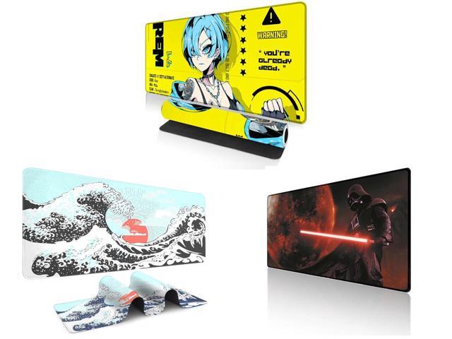 Alpha Fit Anime Gaming Mouse Pad XXL (35.4" x 15.7") - Cyberpunk Blue Haired Girl - Large Mouse Pad Extended - Extra Large Gaming Mouse Pads Yellow Caution Style - 07 and 1 x Alpha Fit Mint Green Great Wave Gaming Mouse Pad XXL (35.4" x 15.7") - Soft Teal Japanese Art Desk Mat - Fresh Nature Aesthetic Extended Keyboard Mat and 1 x Alpha Fit Starwar Gaming Mouse Pad XXL (31.5" x 11.8") - Star Wars Themed Large Mouse Pad - Extra Large Gaming Mouse Pads with Non-Slip Rubber Base & Stitched Edges for Sci-Fi Setup