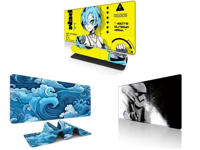 Alpha Fit Anime Gaming Mouse Pad XXL (35.4" x 15.7") - Cyberpunk Blue Haired Girl - Large Mouse Pad Extended - Extra Large Gaming Mouse Pads Yellow Caution Style - 07 and 1 x Alpha Fit Classic Great Wave off Kanagawa Gaming Mouse Pad XXL (35.4" x 15.7") - Traditional Blue Japanese Art Desk Mat - Non-Slip Rubber Base for Office and 1 x Alpha Fit Star Wars Gaming Mouse Pad XXL (31.5" x 11.8") - Stormtrooper Shatter Black & White - Large Mouse Pad Extended - Sci-Fi Galaxy Empire Desk Mat 12