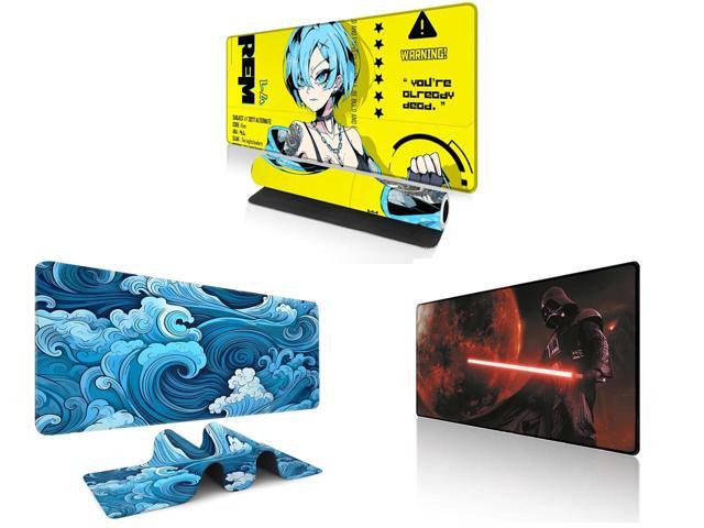 Alpha Fit Anime Gaming Mouse Pad XXL (35.4" x 15.7") - Cyberpunk Blue Haired Girl - Large Mouse Pad Extended - Extra Large Gaming Mouse Pads Yellow Caution Style - 07 and 1 x Alpha Fit Classic Great Wave off Kanagawa Gaming Mouse Pad XXL (35.4" x 15.7") - Traditional Blue Japanese Art Desk Mat - Non-Slip Rubber Base for Office and 1 x Alpha Fit Starwar Gaming Mouse Pad XXL (31.5" x 11.8") - Star Wars Themed Large Mouse Pad - Extra Large Gaming Mouse Pads with Non-Slip Rubber Base & Stitched Edges for Sci-Fi Setup