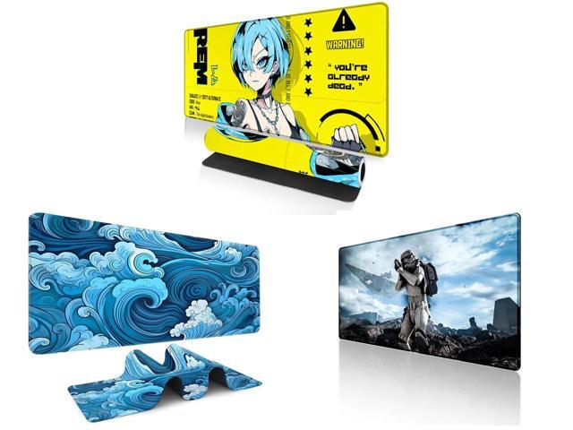 Alpha Fit Anime Gaming Mouse Pad XXL (35.4" x 15.7") - Cyberpunk Blue Haired Girl - Large Mouse Pad Extended - Extra Large Gaming Mouse Pads Yellow Caution Style - 07 and 1 x Alpha Fit Classic Great Wave off Kanagawa Gaming Mouse Pad XXL (35.4" x 15.7") - Traditional Blue Japanese Art Desk Mat - Non-Slip Rubber Base for Office and 1 x Alpha Fit Star Wars Gaming Mouse Pad XXL (31.5" x 11.8") - Stormtrooper & Star Destroyer Battlefield Art - Large Mouse Pad Extended - Galactic Empire Gaming Desk Mat 34