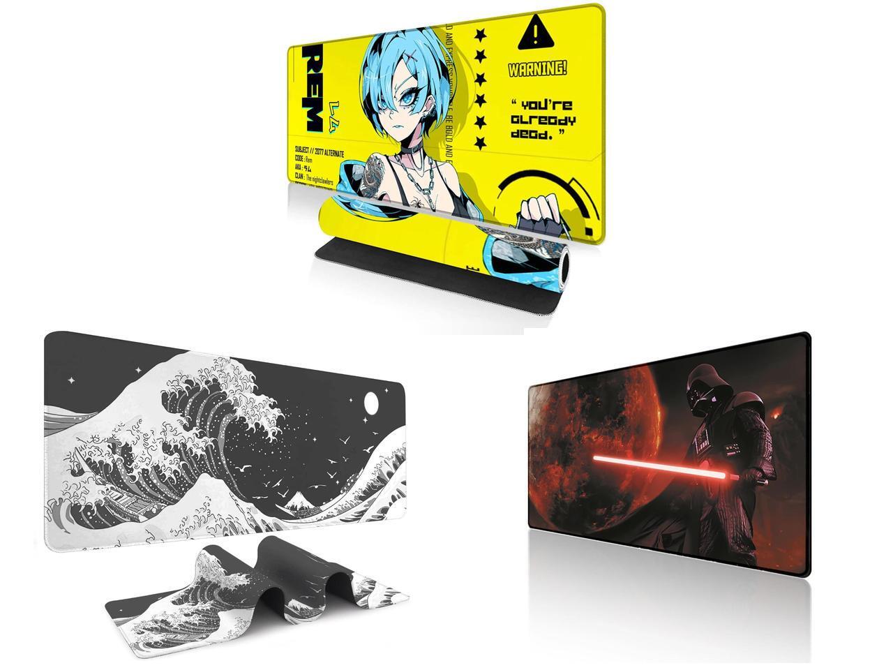 Alpha Fit Anime Gaming Mouse Pad XXL (35.4" x 15.7") - Cyberpunk Blue Haired Girl - Large Mouse Pad Extended - Extra Large Gaming Mouse Pads Yellow Caution Style - 07 and 1 x Alpha Fit Black & White Great Wave Gaming Mouse Pad XXL (35.4" x 15.7") - Monochrome Ink Wash Japanese Art Desk Mat - Minimalist Setup with Stitched Edges and 1 x Alpha Fit Starwar Gaming Mouse Pad XXL (31.5" x 11.8") - Star Wars Themed Large Mouse Pad - Extra Large Gaming Mouse Pads with Non-Slip Rubber Base & Stitched Edges for Sci-Fi Setup