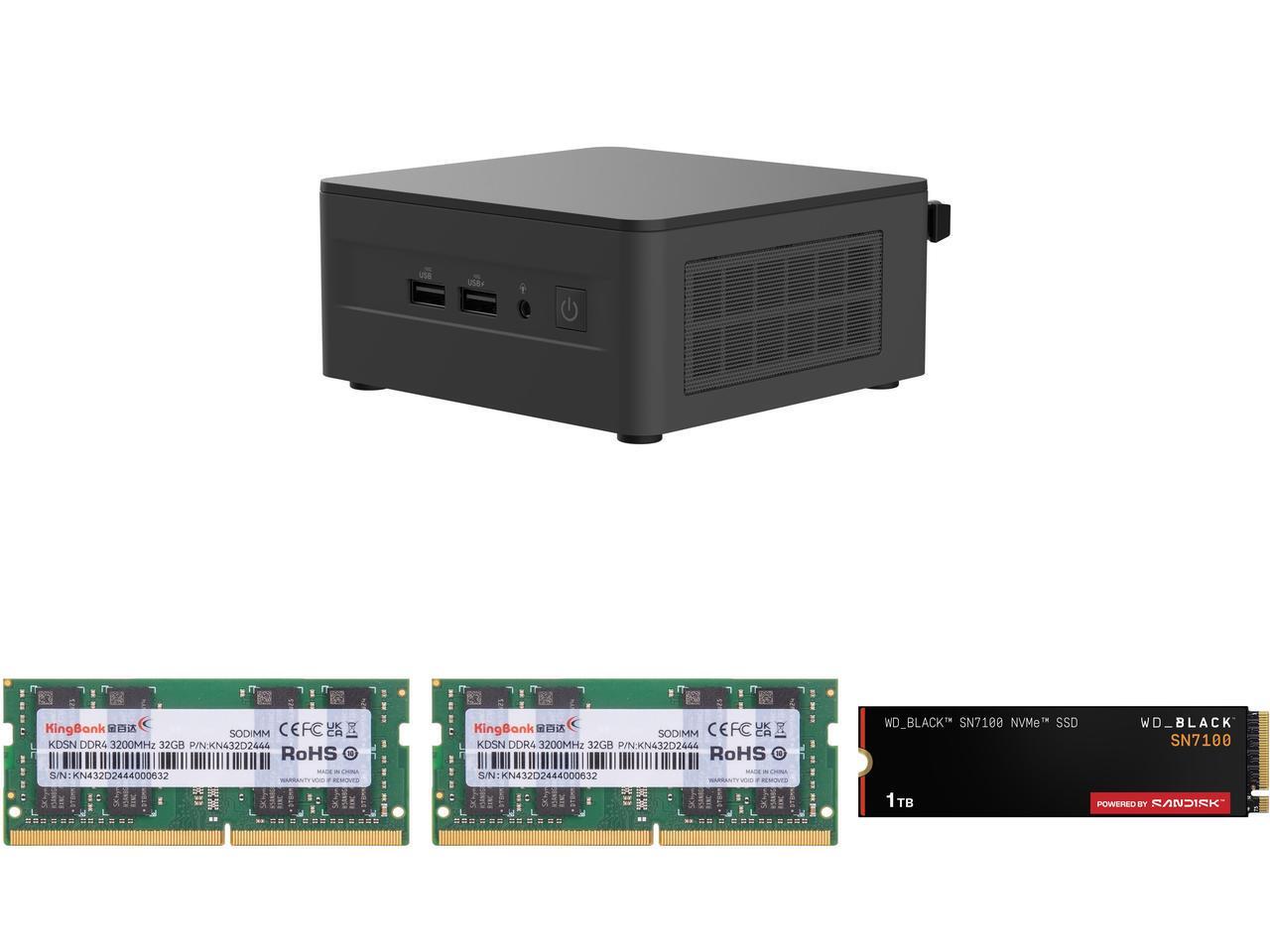 ASUS NUC 13 Pro Tall Barebone Kit Mini PC with Intel 13th Gen Core i5-13420H, Dual channel DDR4 RAM, Triple Storage Design, Thunderbolt 4, Wi-Fi 6E & Bluetooth 5.3, VESA Mount included 2 x Kingbank 32GB 260-Pin DDR4 SO-DIMM DDR4 3200 (PC4 2