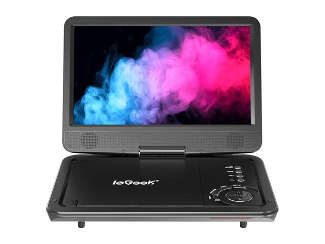 Enhanced Brightness Protective Swivel Screen10.5-inch swivel screen supports 270 degrees rotation and 180 degrees folding back. This ieGeek headrest DVD player could be tied to the car seat, the 1024*600 HD screen and double speaker below the screen bring ultimate visual enjoyment to your road trip.