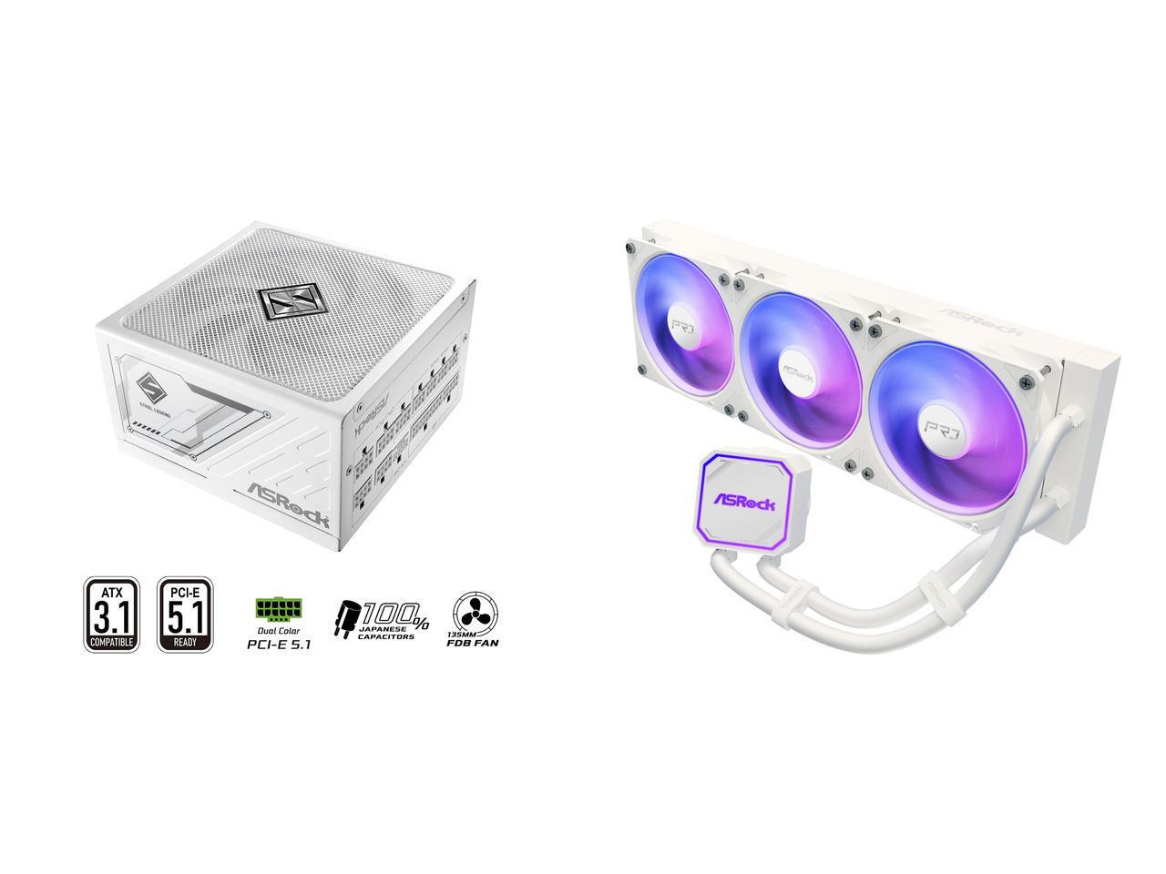 ASRock SL-850GW Gold 850W Full Modular Power Supply ASRock AIO PRO White 360 ARGB 27mm radiator, ARGB waterblock, ARGB Hub-lighting fan, white version