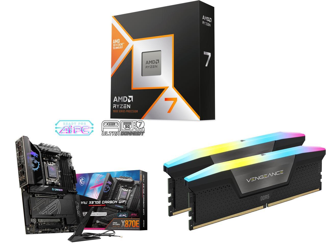 CPU Motherboard Memory Combo - AMD 100-100001973WOF Bundle with MSI MPG X870E CARBON WIFI and Corsair CMH128GX5M2D6000C40