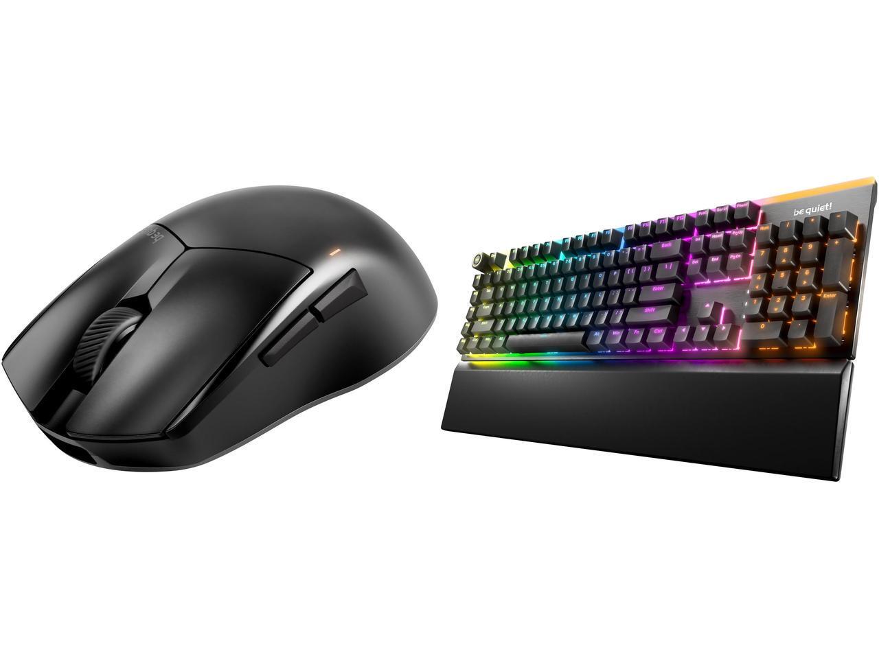 be quiet! Dark Perk Ergo PC mouse | 55g lightweight | ultra-long wireless battery life | 8,000Hz polling rate | PixArt PAW3950 sensor | 32,000 DPI | optical 70m switches | 100% PTFE glide skates and 1 x be quiet! Light Mount Mechanical Keyboard | Linear | Hot-Swappable Lubricated Silent Switches | 3D Media Wheel | ARGB Keyboard | Quality PBT Double-Shot Keycaps | Programmable | BT003US