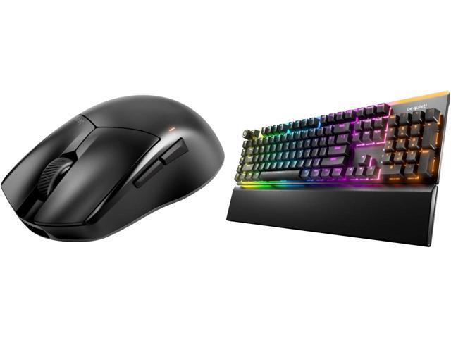 be quiet! Dark Perk Ergo PC mouse | 55g lightweight | ultra-long wireless battery life | 8,000Hz polling rate | PixArt PAW3950 sensor | 32,000 DPI | optical 70m switches | 100% PTFE glide skates and 1 x be quiet! Light Mount Mechanical Keyboard | Tactile | Hot-Swappable Lubricated Silent Switches | 3D Media Wheel | ARGB Keyboard | Quality PBT Double-Shot Keycaps | Programmable | BT004US