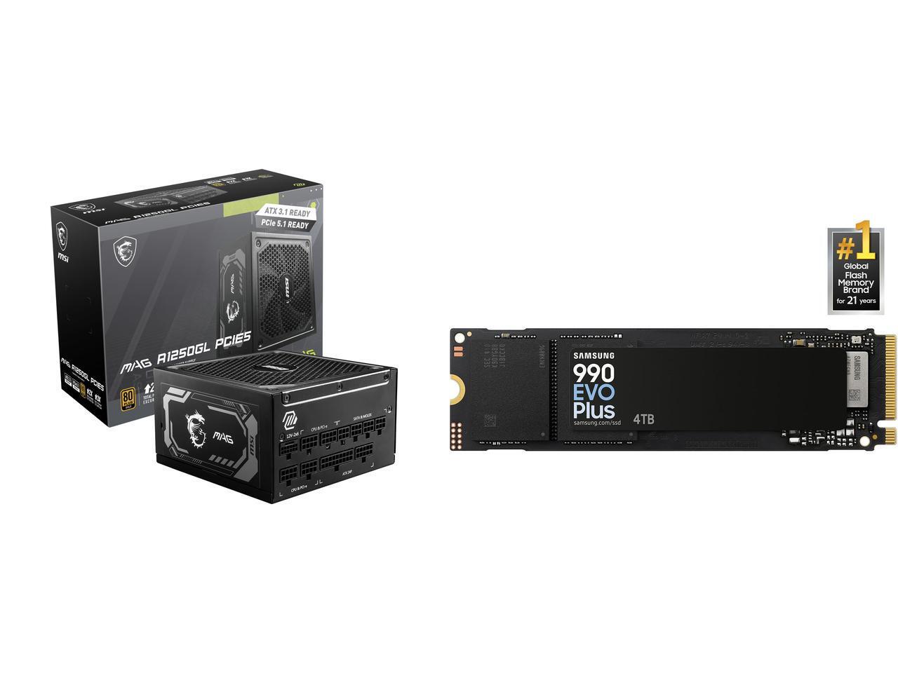 MSI MAG A1250GL PCIE5, Fully Modular Compact Gaming 1250W Power Supply, 80+ Gold, ATX 3.1 & PCIe 5.1 Ready, Native Dual-color 12V-2x6 cable, 10 Year Warranty SAMSUNG 990 EVO PLUS SSD 4TB, PCIe Gen 4x4 | Gen 5x2 M.2 2280, Speeds Up-to 7,250
