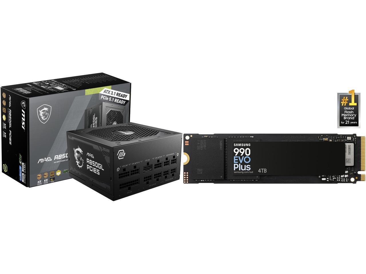 MSI MAG A850GL PCIE5, Fully Modular Compact Gaming 850W Power Supply, 80+ Gold, ATX 3.1 & PCIe 5.1 Ready, Native Dual-color 12V-2x6 cable, 10 Year Warranty SAMSUNG 990 EVO PLUS SSD 4TB, PCIe Gen 4x4 | Gen 5x2 M.2 2280, Speeds Up-to 7,250 MB