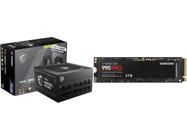 MSI MAG A850GL PCIE5, Fully Modular Compact Gaming 850W Power Supply, 80+ Gold, ATX 3.1 & PCIe 5.1 Ready, Native Dual-color 12V-2x6 cable, 10 Year Warranty SAMSUNG 990 PRO 2TB SSD, PCIe Gen4 M.2 2280, Seq. Read Speeds Up-to 7,450MB/s for Hi
