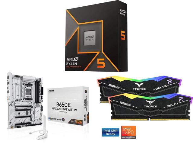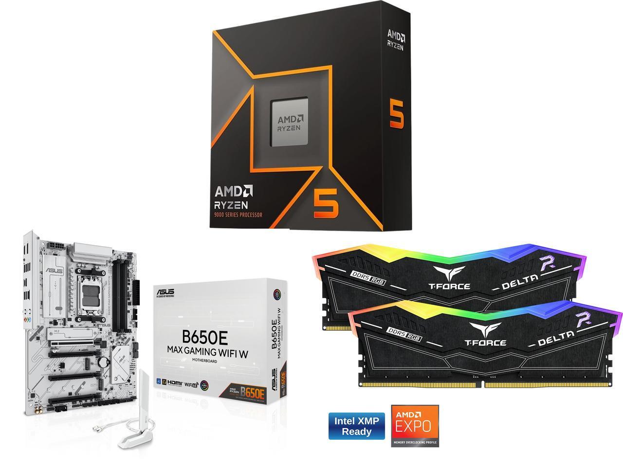CPU Motherboard Memory Combo - AMD Ryzen 5 9600X Bundle with ASUS B650E MAX GAMING WIFI White and Team Group FF3D516G6000HC38ADC01
