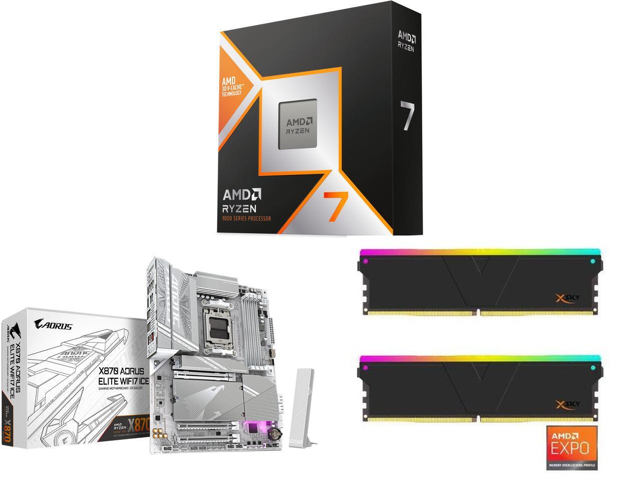 CPU Motherboard Memory Combo - AMD Ryzen 7 9800X3D Bundle with GIGABYTE X870 AORUS ELITE WIFI7 ICE and V-color TMXSAL1664832KWK