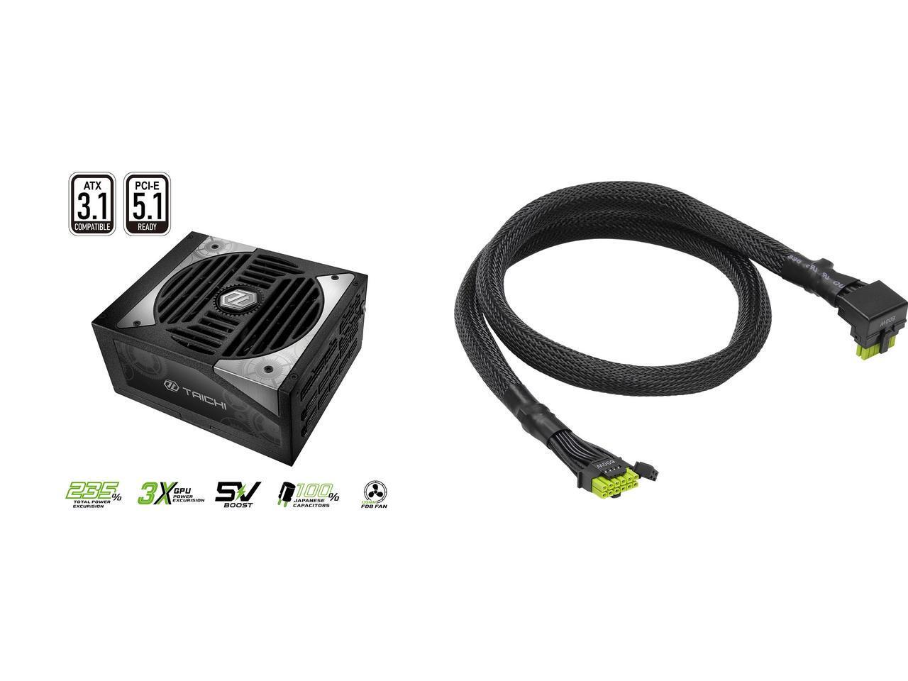 The ASRock TAICHI 1650T supports both current and future standards, fully compliant with ATX12V V3.1 and PCIe Gen 5.1. Ideal for both current systems and future builds, this power supplies can handle up to 235% power excursion and respond swiftly to power spikes, ensuring reliable, safe power for your components.