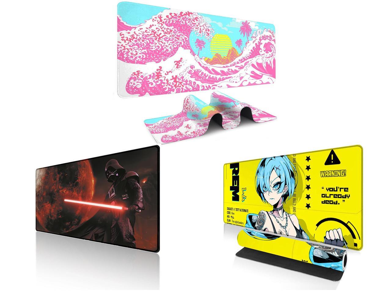 Alpha Fit Pink Sakura Great Wave Gaming Mouse Pad XXL (35.4" x 15.7") - Cute Cherry Blossom Japanese Art Desk Mat - Kawaii Aesthetic Extended Mousepad and 1 x Alpha Fit Starwar Gaming Mouse Pad XXL (31.5" x 11.8") - Star Wars Themed Large Mouse Pad - Extra Large Gaming Mouse Pads with Non-Slip Rubber Base & Stitched Edges for Sci-Fi Setup and 1 x Alpha Fit Anime Gaming Mouse Pad XXL (35.4" x 15.7") - Cyberpunk Blue Haired Girl - Large Mouse Pad Extended - Extra Large Gaming Mouse Pads Yellow Caution Style - 07