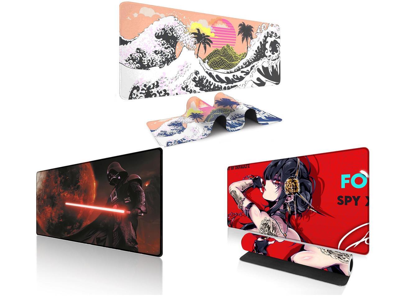 Alpha Fit Orange Sunset Great Wave Gaming Mouse Pad XXL (35.4" x 15.7") - Warm Golden Hour Japanese Art Desk Mat - Lofi Aesthetic Extended Pad and 1 x Alpha Fit Starwar Gaming Mouse Pad XXL (31.5" x 11.8") - Star Wars Themed Large Mouse Pad - Extra Large Gaming Mouse Pads with Non-Slip Rubber Base & Stitched Edges for Sci-Fi Setup and 1 x Alpha Fit Anime Gaming Mouse Pad XXL (35.4" x 15.7") - Red Rose Assassin Girl - Large Mouse Pad Extended - Extra Large Gaming Mouse Pads Secret Agent Style - 11