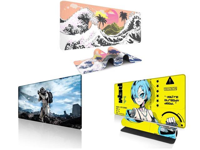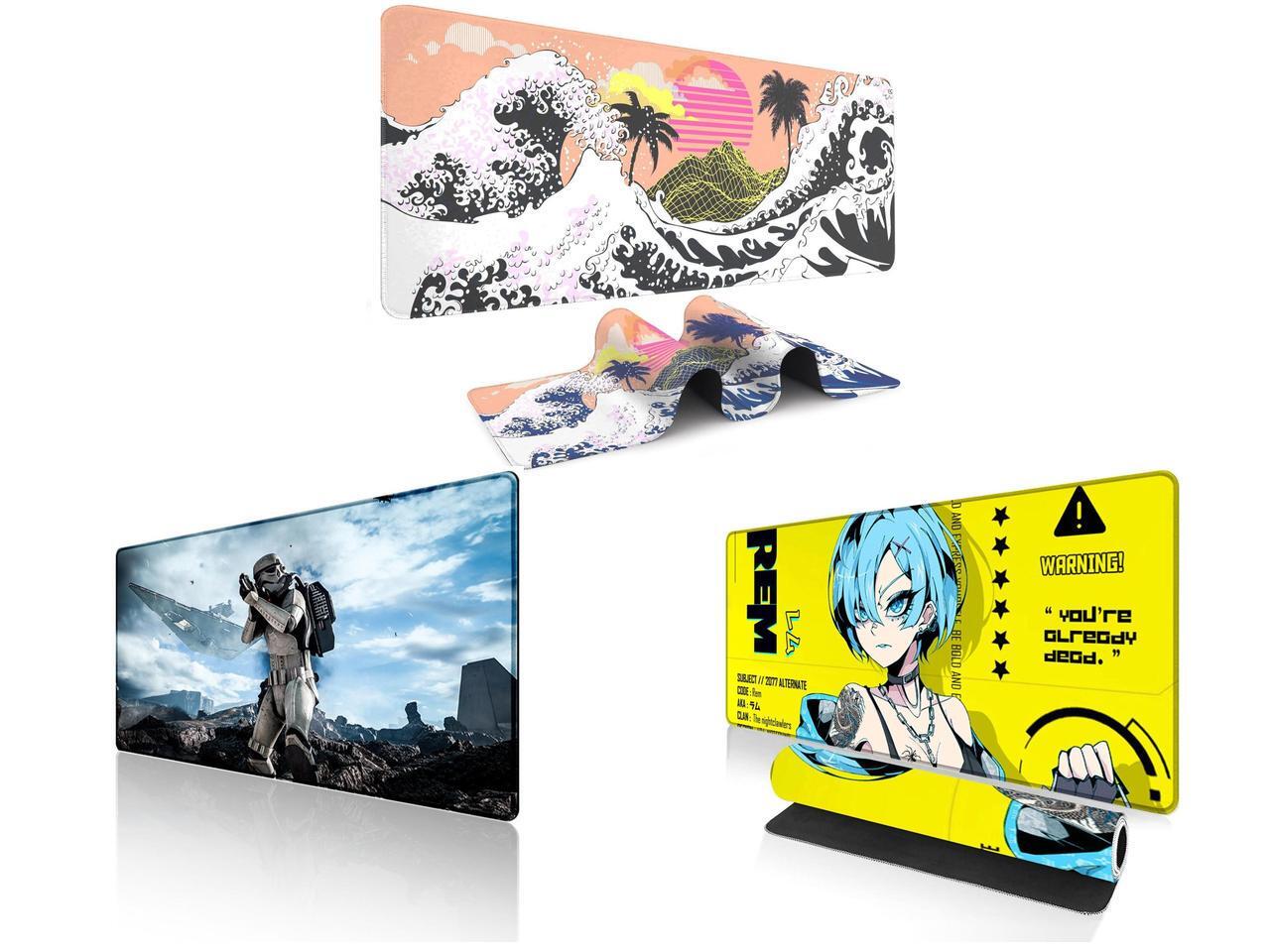 Alpha Fit Orange Sunset Great Wave Gaming Mouse Pad XXL (35.4" x 15.7") - Warm Golden Hour Japanese Art Desk Mat - Lofi Aesthetic Extended Pad and 1 x Alpha Fit Star Wars Gaming Mouse Pad XXL (31.5" x 11.8") - Imperial Stormtrooper & Star Destroyer Battle Art - Large Extended Desk Mat - Non-Slip Rubber Base for PC & Laptop Gaming Setup and 1 x Alpha Fit Anime Gaming Mouse Pad XXL (35.4" x 15.7") - Cyberpunk Blue Haired Girl - Large Mouse Pad Extended - Extra Large Gaming Mouse Pads Yellow Caution Style - 07