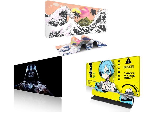 Alpha Fit Orange Sunset Great Wave Gaming Mouse Pad XXL (35.4" x 15.7") - Warm Golden Hour Japanese Art Desk Mat - Lofi Aesthetic Extended Pad and 1 x Alpha Fit Star Wars Gaming Mouse Pad XXL (31.5" x 11.8") - Darth Vader Dark Side Art - Large Mouse Pad Extended - Extra Large Gaming Mouse Pads Sith Lord Desk Mat 31 and 1 x Alpha Fit Anime Gaming Mouse Pad XXL (35.4" x 15.7") - Cyberpunk Blue Haired Girl - Large Mouse Pad Extended - Extra Large Gaming Mouse Pads Yellow Caution Style - 07