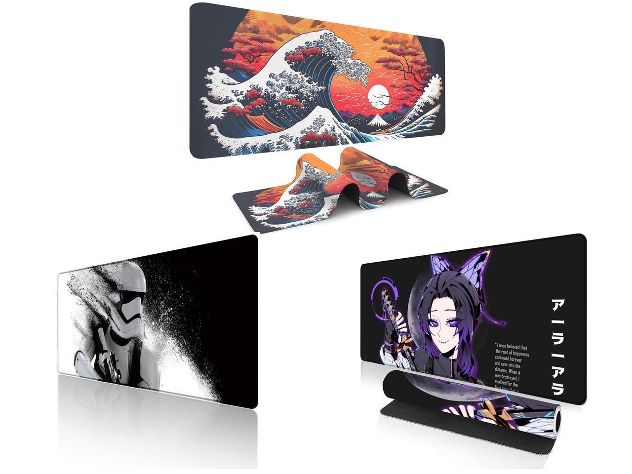 Alpha Fit Orange Sunset Great Wave Gaming Mouse Pad XXL (35.4" x 15.7") - Warm Golden Hour Japanese Art Desk Mat - Lofi Aesthetic Extended Pad and 1 x Alpha Fit Star Wars Gaming Mouse Pad XXL (31.5" x 11.8") - Stormtrooper Shatter Black & White - Large Mouse Pad Extended - Sci-Fi Galaxy Empire Desk Mat 12 and 1 x Alpha Fit Anime Gaming Mouse Pad XXL (35.4" x 15.7") - Purple Butterfly Swordswoman - Large Mouse Pad Extended - Extra Large Gaming Mouse Pads Ara Ara Katana Style - 06