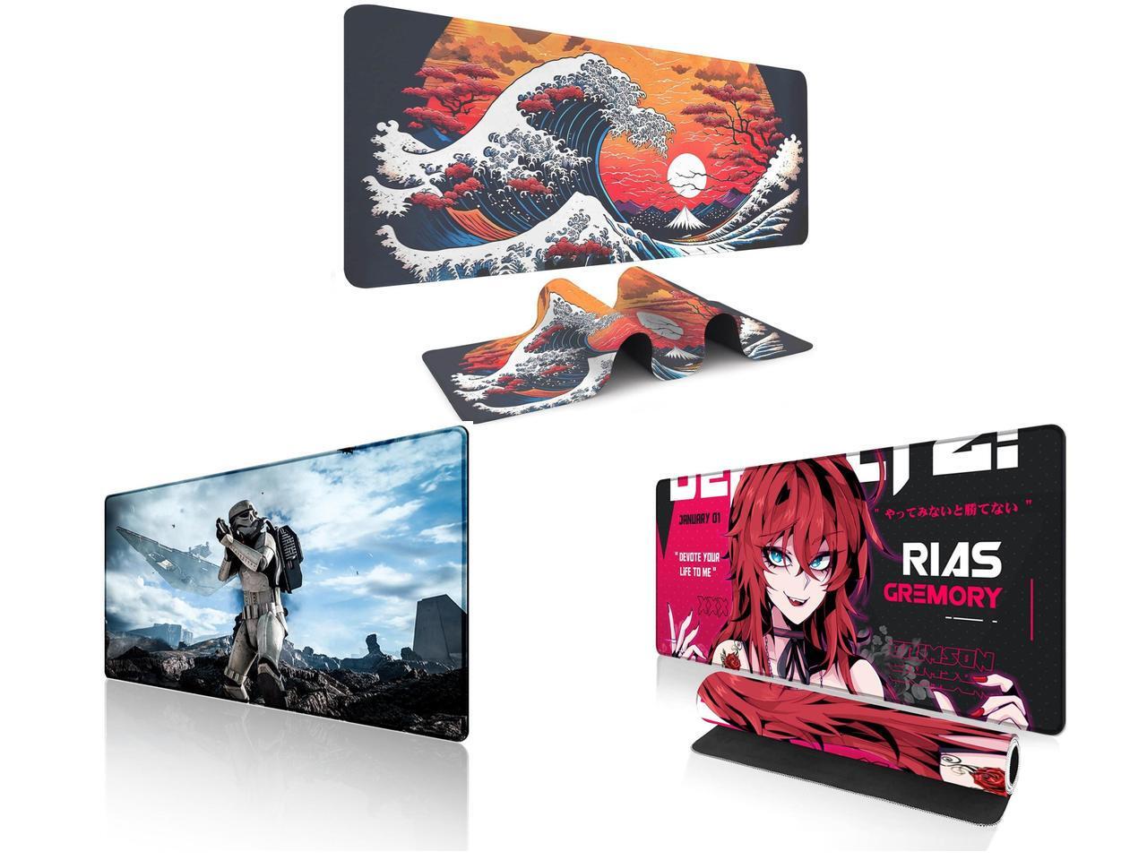 Alpha Fit Orange Sunset Great Wave Gaming Mouse Pad XXL (35.4" x 15.7") - Warm Golden Hour Japanese Art Desk Mat - Lofi Aesthetic Extended Pad and 1 x Alpha Fit Star Wars Gaming Mouse Pad XXL (31.5" x 11.8") - Imperial Stormtrooper & Star Destroyer Battle Art - Large Extended Desk Mat - Non-Slip Rubber Base for PC & Laptop Gaming Setup and 1 x Alpha Fit Anime Gaming Mouse Pad XXL (35.4" x 15.7") - Crimson Red Haired Demon Girl - Large Mouse Pad Extended - Extra Large Gaming Mouse Pads Gothic Waifu Style - 01