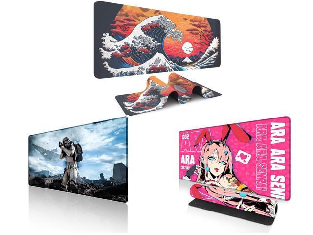 Alpha Fit Orange Sunset Great Wave Gaming Mouse Pad XXL (35.4" x 15.7") - Warm Golden Hour Japanese Art Desk Mat - Lofi Aesthetic Extended Pad and 1 x Alpha Fit Star Wars Gaming Mouse Pad XXL (31.5" x 11.8") - Imperial Stormtrooper & Star Destroyer Battle Art - Large Extended Desk Mat - Non-Slip Rubber Base for PC & Laptop Gaming Setup and 1 x Alpha Fit Anime Gaming Mouse Pad XXL (35.4" x 15.7") - Pink Bunny Girl Waifu - Large Mouse Pad Extended - Extra Large Gaming Mouse Pads Ara Ara Senpai Style - 04