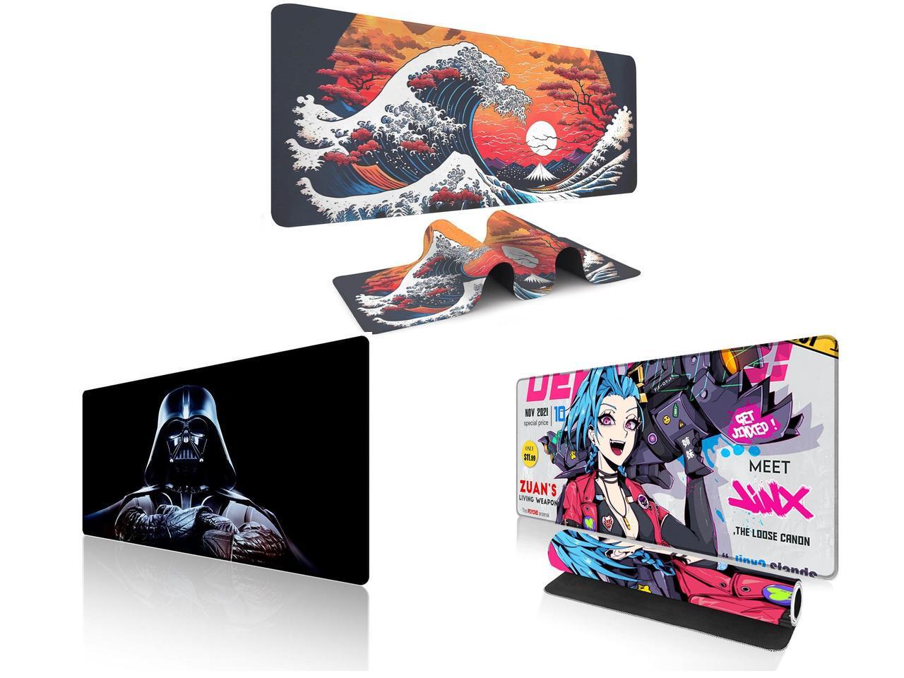 Alpha Fit Orange Sunset Great Wave Gaming Mouse Pad XXL (35.4" x 15.7") - Warm Golden Hour Japanese Art Desk Mat - Lofi Aesthetic Extended Pad and 1 x Alpha Fit Star Wars Gaming Mouse Pad XXL (31.5" x 11.8") - Darth Vader Dark Side Art - Large Mouse Pad Extended - Extra Large Gaming Mouse Pads Sith Lord Desk Mat 31 and 1 x Alpha Fit Anime Gaming Mouse Pad XXL (35.4" x 15.7") - Blue Punk Graffiti Girl - Large Mouse Pad Extended - Extra Large Gaming Mouse Pads Loose Cannon Style - 03