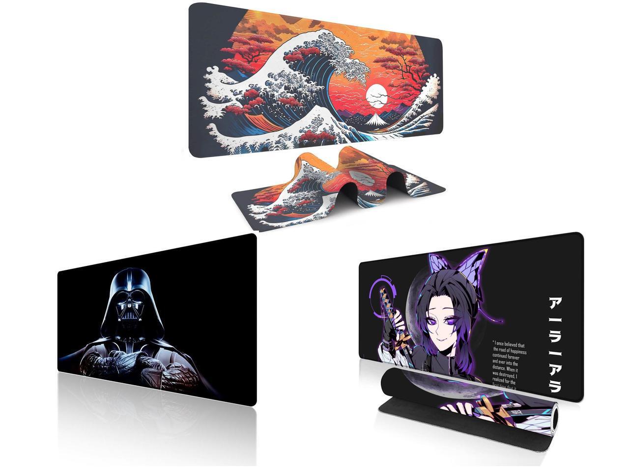 Alpha Fit Orange Sunset Great Wave Gaming Mouse Pad XXL (35.4" x 15.7") - Warm Golden Hour Japanese Art Desk Mat - Lofi Aesthetic Extended Pad and 1 x Alpha Fit Star Wars Gaming Mouse Pad XXL (31.5" x 11.8") - Darth Vader Dark Side Art - Large Mouse Pad Extended - Extra Large Gaming Mouse Pads Sith Lord Desk Mat 31 and 1 x Alpha Fit Anime Gaming Mouse Pad XXL (35.4" x 15.7") - Purple Butterfly Swordswoman - Large Mouse Pad Extended - Extra Large Gaming Mouse Pads Ara Ara Katana Style - 06