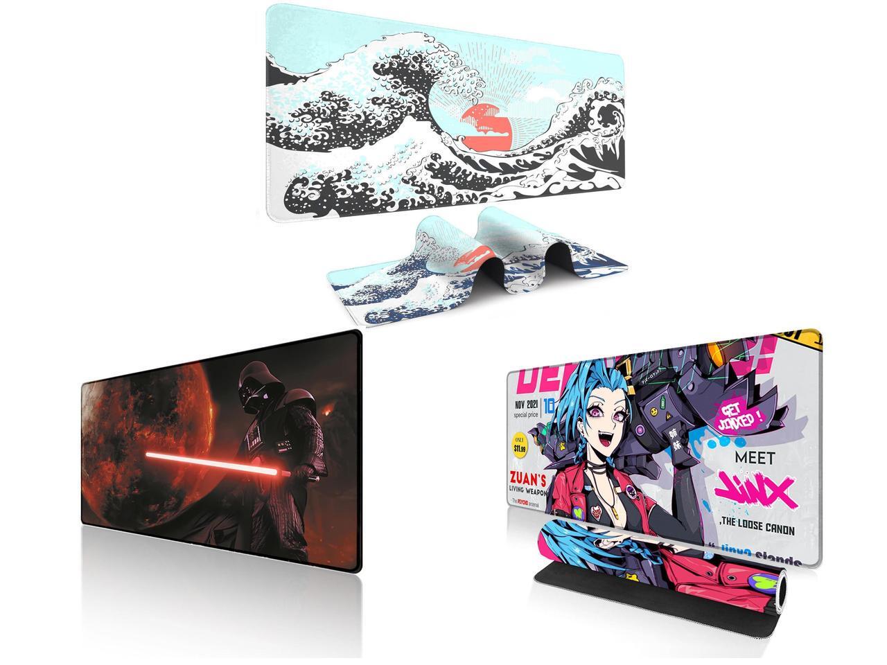 Alpha Fit Mint Green Great Wave Gaming Mouse Pad XXL (35.4" x 15.7") - Soft Teal Japanese Art Desk Mat - Fresh Nature Aesthetic Extended Keyboard Mat and 1 x Alpha Fit Starwar Gaming Mouse Pad XXL (31.5" x 11.8") - Star Wars Themed Large Mouse Pad - Extra Large Gaming Mouse Pads with Non-Slip Rubber Base & Stitched Edges for Sci-Fi Setup and 1 x Alpha Fit Anime Gaming Mouse Pad XXL (35.4" x 15.7") - Blue Punk Graffiti Girl - Large Mouse Pad Extended - Extra Large Gaming Mouse Pads Loose Cannon Style - 03